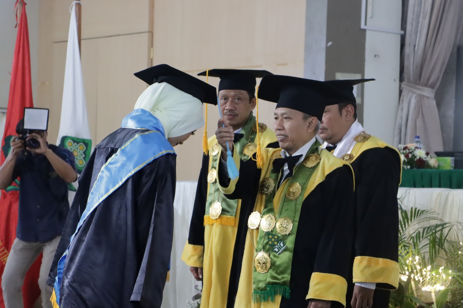 “Perjalanan panjang di kampus adalah bekal. Jangan takut menghadapi perubahan. Jadilah generasi pembelajar sepanjang hayat yang mampu memberi manfaat bagi manusia, bangsa, dan negara. Di balik toga hari ini ada doa dan perjuangan orang tua, yang menjadi pintu keberkahan dan kesuksesan hidup,” tutur Rektor disambut tepuk tangan ribuan hadirin.