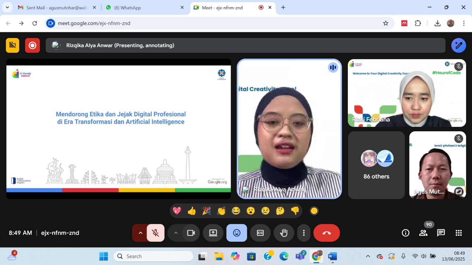 UIN Walisongo Online, Semarang – UIN Walisongo, bekerja sama dengan Google.org, ASEAN Foundation, dan Kaizen Collaborative Impact berhasil menyelenggarakan webinar bertema “Mendorong Etika dan Jejak Digital Profesional di Era Transformasi dan Artificial Intelligence” secara online pada Jumat (13/06/2025).