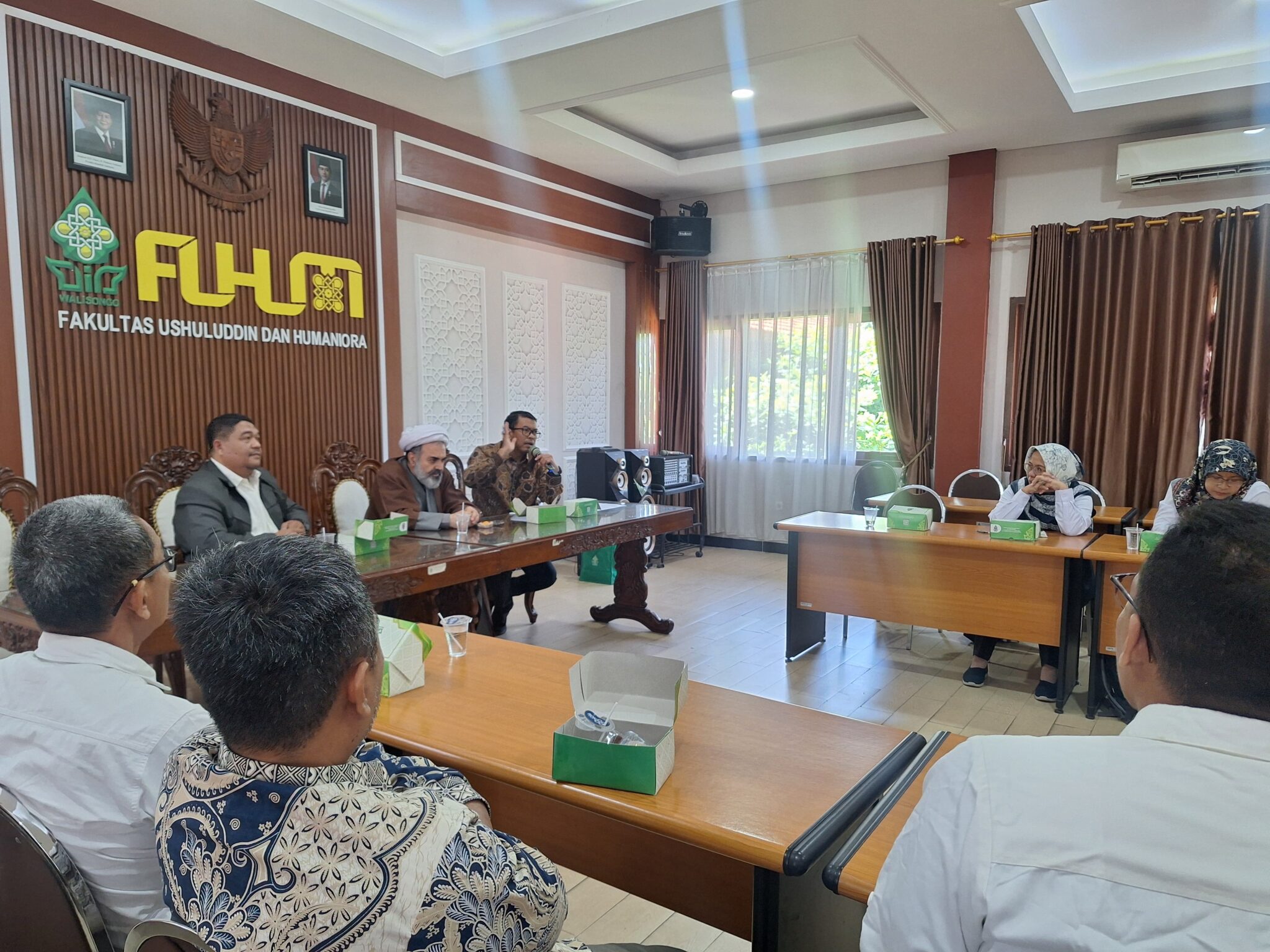 UIN Walisongo Online, Semarang – Fakultas Ushuluddin dan Humaniora (FUHum) UIN Walisongo Semarang menggelar diskusi ilmiah bersama delegasi dari Islamic Cultural Center (ICC) Jakarta, Prof. Dr. Mohammad Sharifani dan Dr. Akmal Kamil, M.A., sebagai bagian dari implementasi MoU antara ICC dengan UIN Walisongo yang bertempat di Gedung Dekanat FUHum pada Selasa (22/07/2025). Diskusi ini mengangkat tema penting seputar pengembangan filsafat dan teknologi dalam konteks keislaman kontemporer.