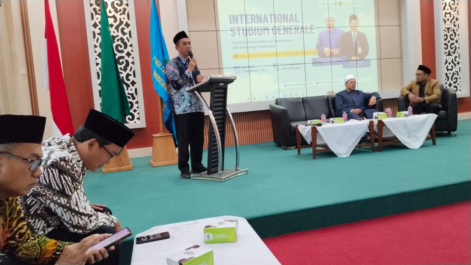 UIN Walisongo Online, Semarang – Fakultas Ushuluddin dan Humaniora (FUHUM) Universitas Islam Negeri (UIN) Walisongo Semarang sukses menyelenggarakan Internasional Stadium General bertema “Ilmu-ilmu Ushuluddin dan Tantangan Modernitas” yang bertempat di Aula Gedung Q Kampus 2 UIN Walisongo pada Rabu (03/09/2025). Acara ini dibuka secara resmi oleh Dekan Fakultas Ushuluddin dan Humaniora, Dr. Mokh. Sya’roni, M.Ag., yang menegaskan pentingnya kegiatan ini untuk memperkuat pemahaman ilmu-ilmu keislaman dalam menghadapi dinamika zaman.