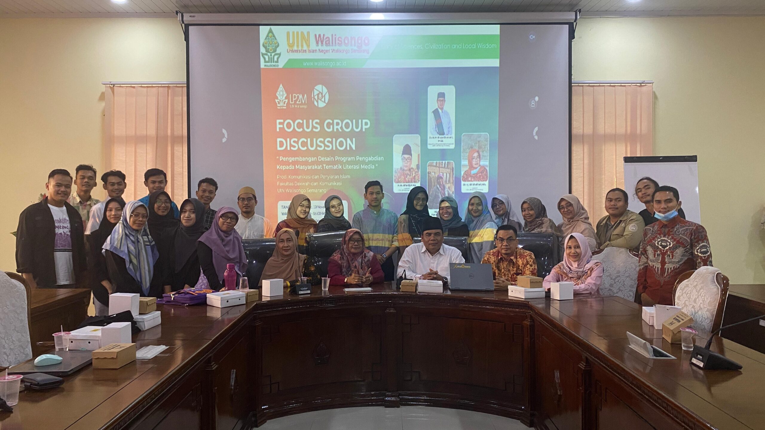UIN Walisongo Online, Semarang – Jurusan Komunikasi dan Penyiaran Islam (KPI) menyelenggarakan Focus Grup Discussion (FGD) Pengembangan Desain Program Pengabdian Kepada Masyarakat Tematik Literasi Media. Acara dilaksanakan pada Jum’at (10/11) di Ruang Sidang Utama Fakultas Dakwah dan Komunikasi (FDK) Universitas Islam Negeri (UIN) Walisongo Semarang, diikuti oleh para Dosen dan mahasiswa.