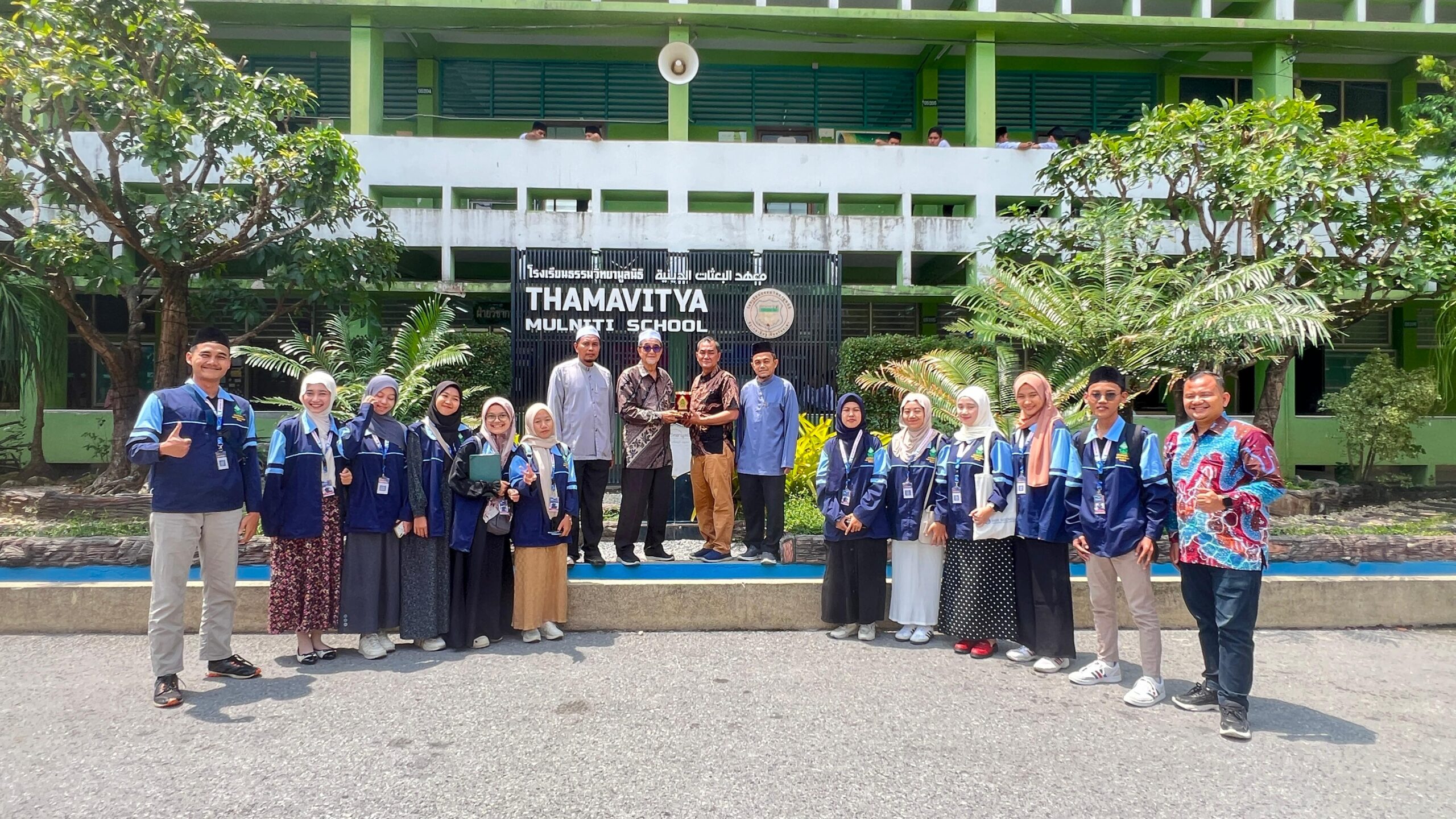 UIN Walisongo Online, Thailand – UIN Walisongo Semarang berhasil menghantarkan 11 mahasiswa dari lima Fakultas dalam misi KKN Internasional Tahun 2024 yang berlokasi di Yala, Thailand pada Rabu (25/07/2024). Penyerahan 11 Mahasiswa KKN kepada Yayasan Thamavitya Mulniti School oleh LP2M UIN Walisongo Semarang diwakili oleh Johan Arifin, M.M. dan Abdul Malik, M.Si. Penyerahan dihadiri langsung oleh H. Abdur Rohman selaku Manager Yayasan Thamavitya Mulniti School dan H. Razi Ben Sulong selaku Kepala Sekolah beserta jajaran Ustads dan Ustadzah.