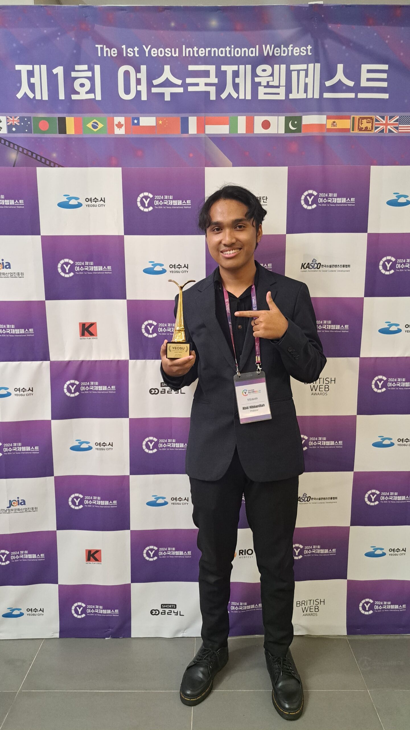 “Setelah film selesai, kami fokus untuk mendistribusikannya ke festival-festival film, kebetulan Yeosu Internasional Webfest ini adalah salah satu festival yang kami ikuti. Alhamdulillah film kami masuk sebagai nominasi dan kami diundang secara langsung untuk mengikuti awarding di Korea” tutur Abid yang juga menjadi Mahasiswa KPI FDK UIN Walisongo.