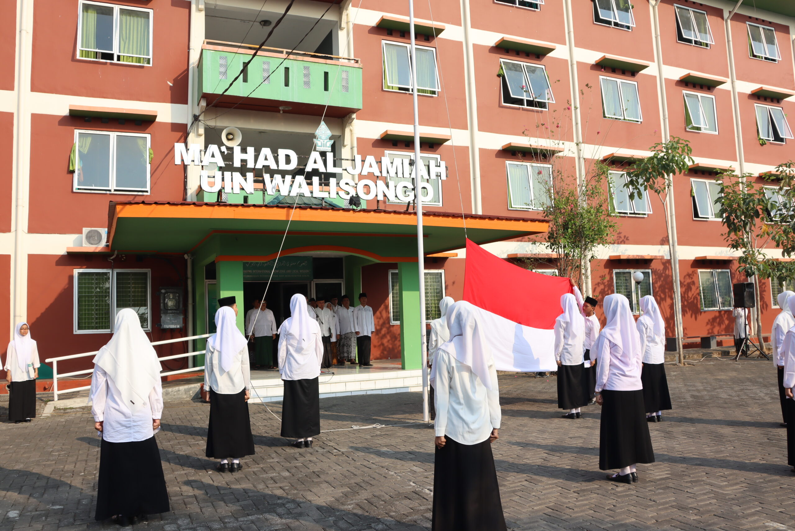 Dalam upacara ini diikuti oleh seluruh santri putri di Mahad Al Jamiah UIN Walisongo, turut dibacakan juga Ikrar santri dan Mars Hari Santri.