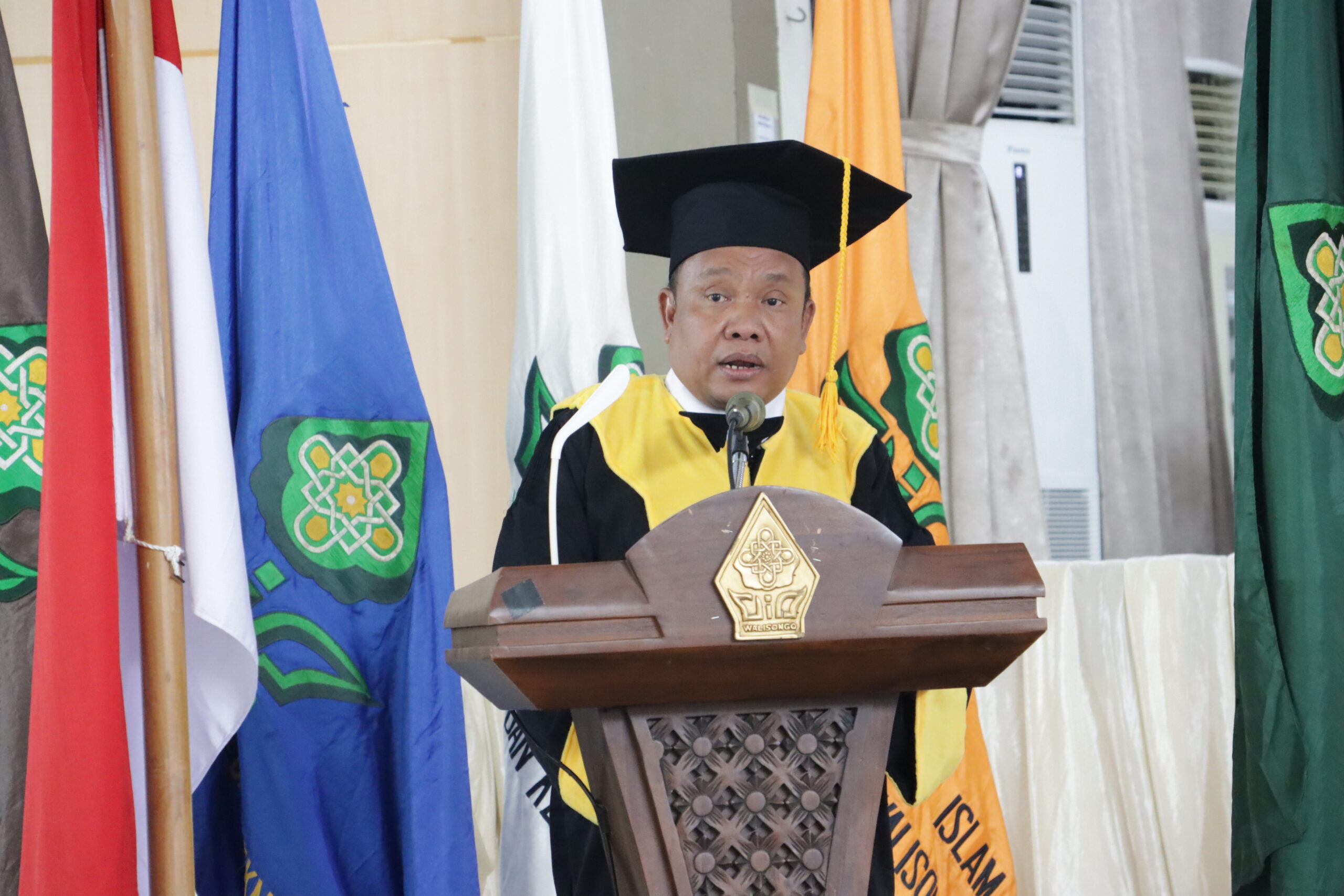 UIN Walisongo Online, Semarang – Prof. Dr. H. Ahmad Izzuddin, M.Ag., dosen Fakultas Syariah dan Hukum UIN Walisongo Semarang, resmi dikukuhkan sebagai Guru Besar Ilmu Falak dalam sebuah upacara yang berlangsung di Aula 2 Kampus 3 Gedung Prof. Tgk Ismail Yaqub pada Rabu (24/7/2024). Pengukuhan ini dipimpin oleh Rektor UIN Walisongo, Prof. Dr. Nizar, M.Ag.