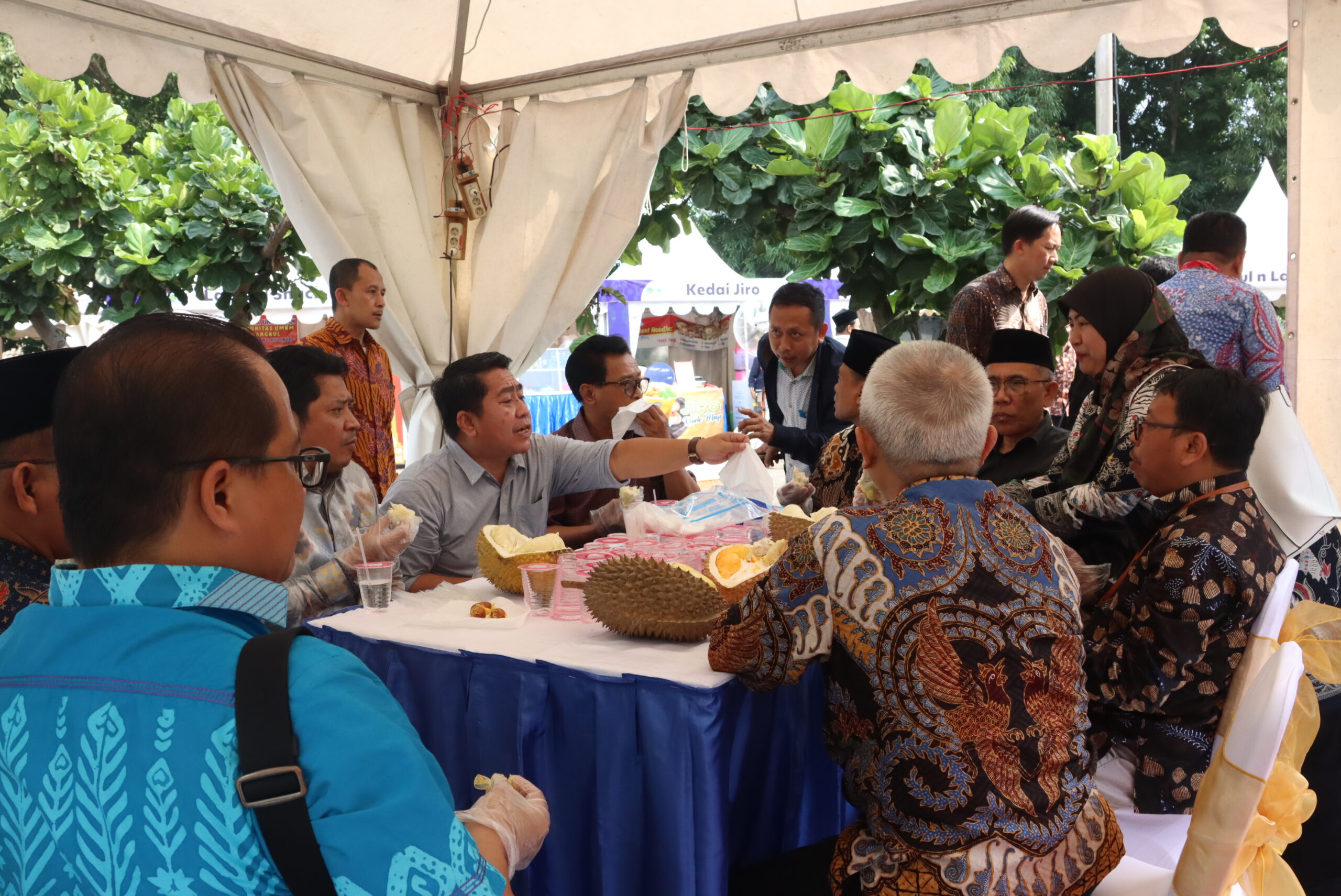 Usai pembukaan, Prof Ali Ramdhani menyempatkan diri mencicipi durian dan melihat stan-stan. Mulai dari olahan makanan, minuman, hingga fashion.